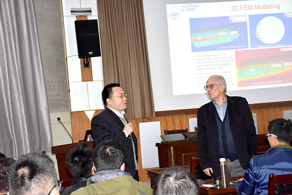 11月20日下午,应星空平台app_星空(中国)焦玉勇院长、唐志成博士邀请,岩石力学与工程领域国际知名专家、国际岩石力学领域权威期刊《Rock Mechanics and Rock Engineering》主编、意大利都灵理工大学Giovanni Barla教授来校做主题为 “Monitoring and modelling of tunnels and caverns”的学术报告。焦玉勇院长主持了报告会,学院60余名师生聆听了报告。