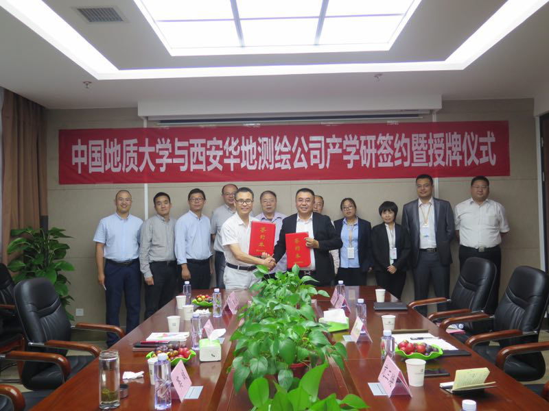 2019年9月15日-9月17日,中国地质大学(武汉)星空平台app_星空(中国)党委副书记江广长、副院长窦斌、勘察与基础工程系主任卢春华、姚爱国教授、院工会主席蔡记华教授及工程地质与岩土工程系葛云峰副教授一行赴西安,先后走访了陕西西探地质装备有限公司和西安华地测绘科技有限公司,并与陕西西探地质装备有限公司召开了产学研合作基地揭牌仪式,与西安华地测绘科技有限公司签订了产学研合作协议并进行揭牌。
