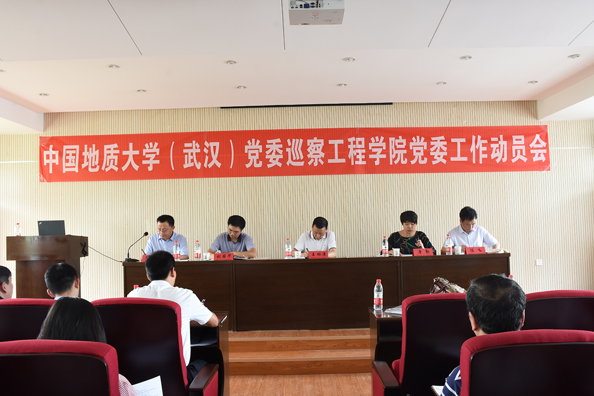 2019年5月24日下午2点半,中国地质大学(武汉)党委巡察星空平台app_星空(中国)党委工作动员会在工程楼418学术报告厅召开。校党委副书记王林清、巡察工作组组长唐勤、副组长刘国华,巡察组成员何卫华、李鹏飞、路金阁、离退休教师代表、学院全体教职工等160余人参加了会议。院长焦玉勇主持会议。