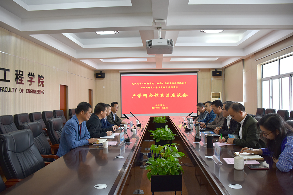 王亮清通过学院发展历程、学科建设、人才培养等几个方面介绍学院情况,阐述了学院与武汉地质工程勘察院、湖北广元岩土工程有限公司之间的深厚渊源,彼此具有全方位合作的基础,希望双方通过此次交流进一步加深合作,在更多领域更深层次取得新突破新成绩。