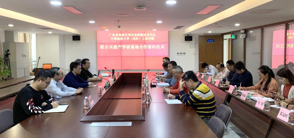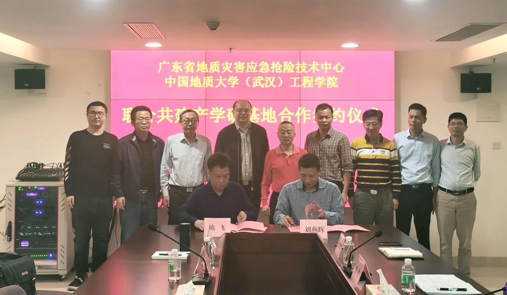 陈飞、刘燕辉签署产学研基地合作协议。根据协议,广东省地质灾害应急抢险技术中心作为中国地质大学(武汉)星空平台app_星空(中国)的产学研基地,双方将定期就人才的培训、技术的创新、引进与推广、联合攻关、学生实习等方面开展协商研究。