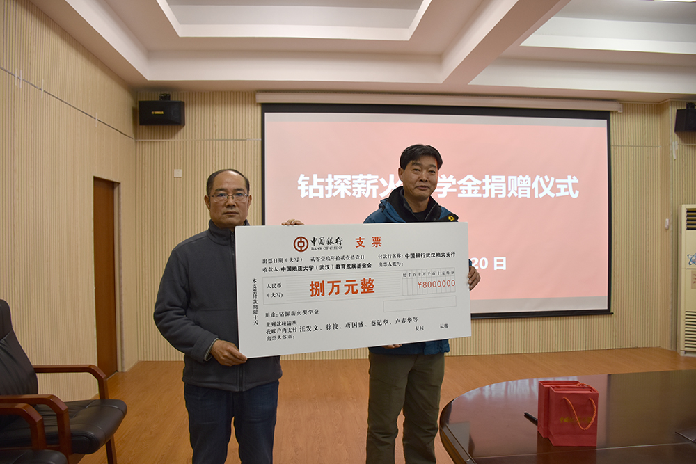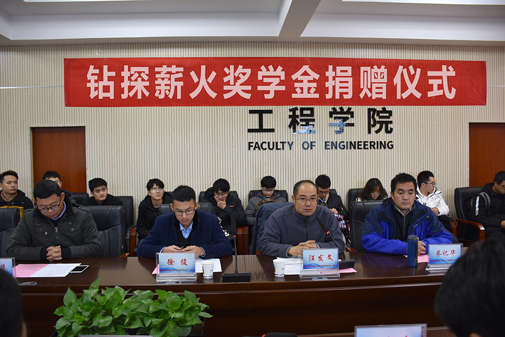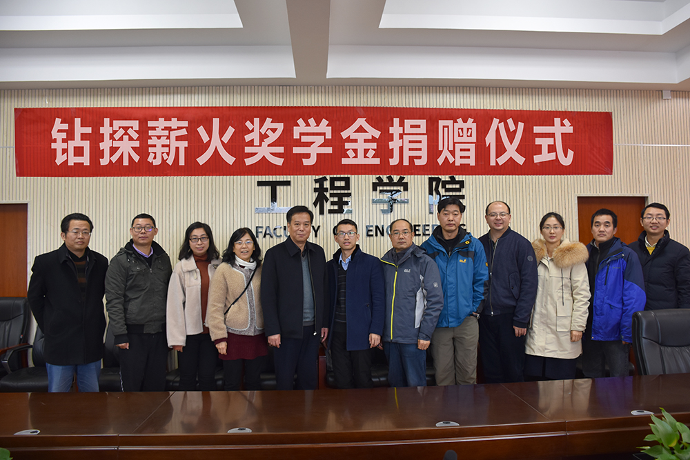12月20日,星空平台app_星空(中国)“钻探薪火奖学金捐赠仪式”在工程楼315会议室举行。湖北省城市地质工程院勘查部主任汪发文、副主任徐俊,校友工作与教育基金管理处副处长吕占峰,星空平台app_星空(中国)党委书记陈飞,副书记江广长,勘察与基础工程系教授段隆臣、蔡记华、卢春华及2017级部分学生代表参加捐赠仪式。