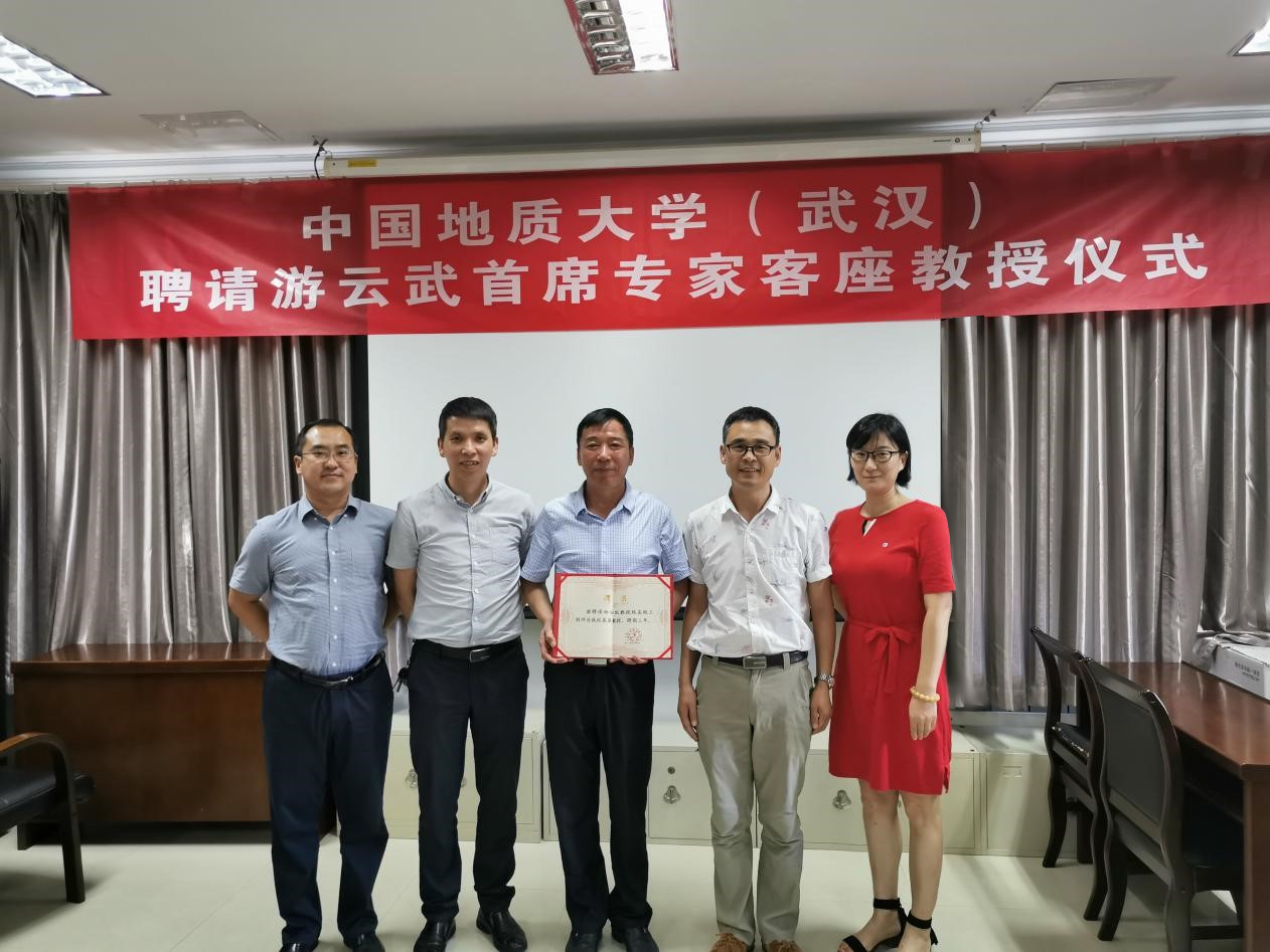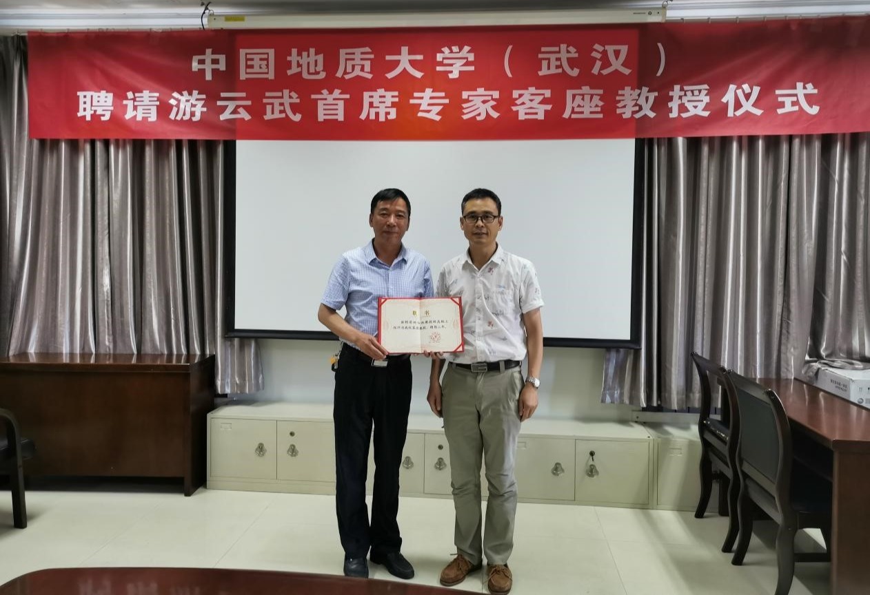 8月29日下午,中国地质大学(武汉)聘请游云武首席专家为客座教授的仪式在江汉油田工程有限公司会议室举行。江汉油田工程有限公司游云武首席专家、星空平台app_星空(中国)副院长窦斌教授及双方相关人员出席仪式。仪式由窦斌副院长主持。