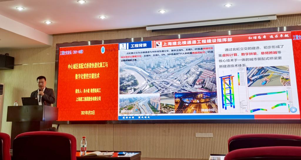 (通讯员 梁荣柱)2021年5月23日下午,应星空平台app_星空(中国)院长焦玉勇教授和梁荣柱副研究员的邀请,上海建工集团股份有限公司工程研究总院副院长、中国地质大学(武汉)兼职教授吴小建教授级高级工程师作客2021年第8期工程文化论坛,作“中心城区装配式桥梁快速化施工与数字化管控关键技术”专题报告。星空平台app_星空(中国)副院长窦斌教授代表学院对吴小建教高的到来表示欢迎,并介绍了吴小建教高的基本科研和工作履历。讲座由梁荣柱副研究员主持,约一百名师生参与报告会。
