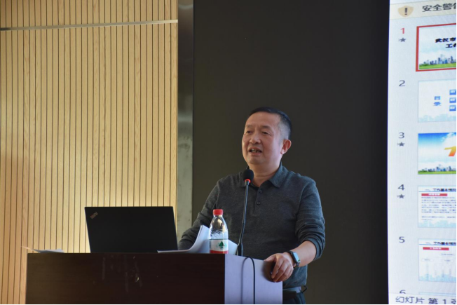 随后,彭汉发教授级高级工程师以《武汉城市地质调查成果与应用》为题,介绍了多要素地质调查的必要性,总结了武汉市前期多要素地质调查挑战与难题,简要概括了其实现途径与进展现状,结合多要素地质调查成果分析了其实践应用。武汉多要素地质调查精准对接城市发展需求,提出解决城市问题和保障城市高质量发展的对策建议;结合大数据、云计算、GIS等先进技术,将调查成果融入城市管理主流程,充分发挥地质工作的支撑作用,服务于城市规划建设和可持续发展。此外,彭汉发教授介绍了武汉市测绘研究院在武汉市城市多要素地质调查未来五到十年的目标规划以及对人才的迫切需求,他希望学院能够继续为武汉市测绘研究院输送高质量的地质、资源、环境等学科人才,双方在校企合作方面深度融合,共同培养实践型人才。