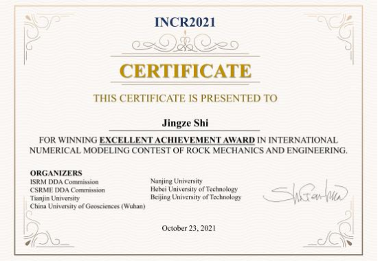 我院学子在国际岩石力学与工程数值仿真大赛中获一等奖