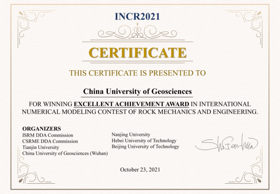(通讯员 张美霞)近日,在第一届国际岩石力学与工程数值仿真大赛中,我院学子取得一等奖、杰出贡献奖的好成绩,学校荣获卓越成就奖。