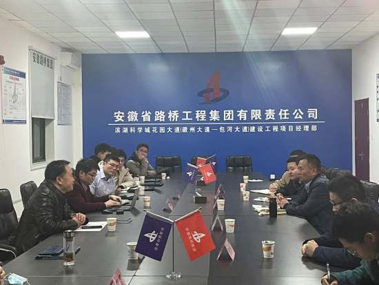 授牌仪式结束后,双方到花园大道项目部进行现场考察,了解工程的进展情况以及工程中出现的问题,并对问题的解决方案进行探讨。现场考察结束后,星空平台app_星空(中国)老师张伟丽、彭超、吕加贺、曾聪以及四位研究生在花园大道项目部对前期合作的科研课题进行阶段性汇报,并与安徽省路桥集团的项目负责人对相关问题进行了热烈的讨论。与会人员还围绕如何做实做好基地建设工作、联合培养研究生、科研攻关等内容进行了研讨,一致表示将不忘初心,继续加强校企合作,把科研成果应用在祖国大地上,培养出满足企业需求的人才。