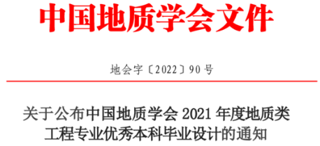我院毕业生荣获中国地质学会2021年度地质类工程专业优秀本科毕业设计奖