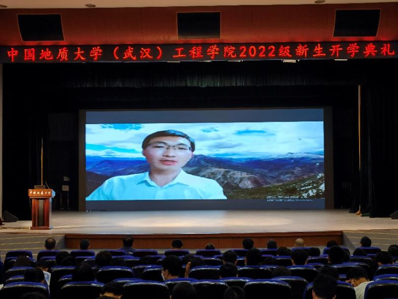 2021年全国五一劳动奖章获得者、2022年中国青年五四奖章获得者、学院优秀校友、中铁一院地质高级工程师王杜江发言。他向新生们送上衷心的祝贺,并表示选择星空平台app_星空(中国)就是选择了奋发之路与创业之路。结合自身工作经历与感悟,他建议同学们培养有利身心健康、心智成熟、事业发展的良好习惯,立志在新时代铸造伟大精品工程,以奋斗的青春为强国贡献先锋力量。