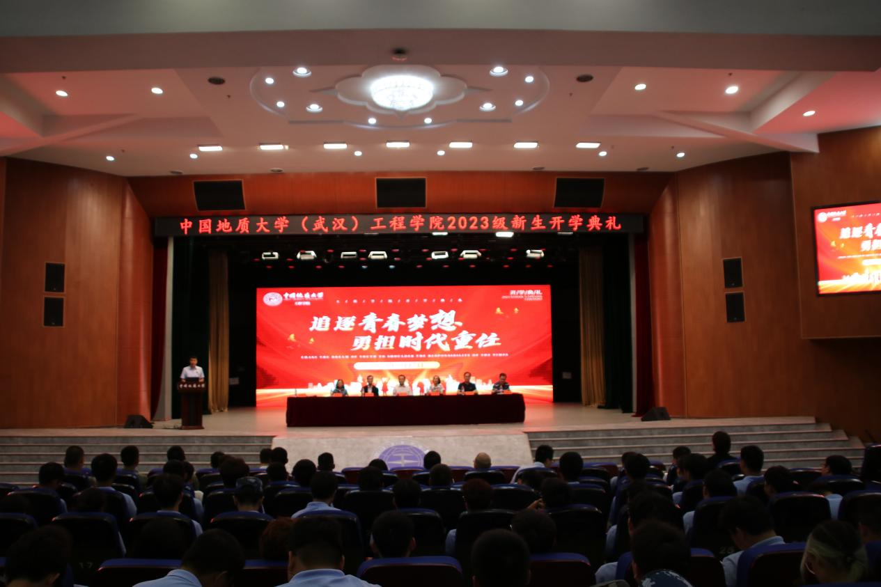 (通讯员 贾彦平)莘莘学子汇江城,工程栋梁破凌云。9月17日下午,中国地质大学(武汉)星空平台app_星空(中国)2023级新生开学典礼在南望山校区弘毅堂隆重举行。学院党委书记李红丽,党委副书记、院长焦玉勇,党委副书记、纪委书记高晓东,副院长王亮清、窦斌、倪晓阳、章广成,各系教工党支部书记、系主任,学院研究生导师代表,2023级本科生班主任,全体辅导员、军训教官代表以及506名本科生、298名硕士生、56名博士生参加典礼。中建科工旗下中建钢构股份有限公司首席专家、教授级高级工程师、“全国道德模范”、“全国五一劳动奖章”获得者陆建新,星空平台app_星空(中国)2000级土木工程专业校友、湖北道泽勘测设计院有限公司总工程师谢昭宇两位嘉宾受邀出席。高晓东主持典礼。