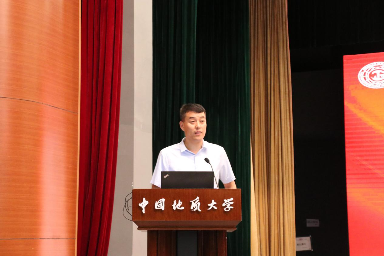 星空平台app_星空(中国)院长焦玉勇教授讲话。他以“祝贺”“欢迎”“希望”寄语新生,祝贺860位新生加入国家工程行业,欢迎同学们来到中国地质大学星空平台app_星空(中国),为学院发展注入新鲜血液、增添奋进力量。他系统全面的向大家介绍了学院的历史沿革、系室设置、师资力量、学科建设、科学研究、国际交流等基本情况,勉励全体新生用习近平新时代中国特色社会主义思想凝心铸魂,用“艰苦朴素,求真务实”的校训精神和“明理尚实、拓新砺行”的院训精神领航前进,跟随学校学院的发展步伐,用好学校学院的发展平台,毅然投身于国家工程建设行业当中,迎难而上、奋勇前行,不负历史、不复时代,为把学院建设成为地质工程与人居安全领域特色鲜明、享誉国际的一流研究型学院不懈努力!