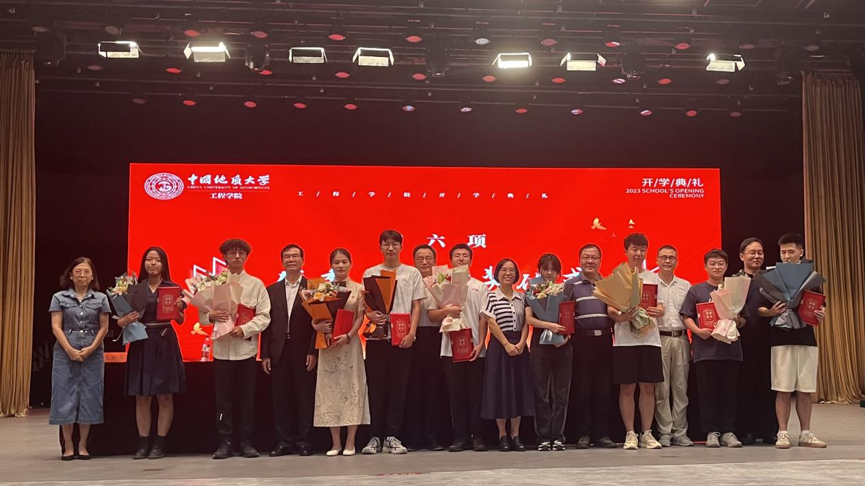 一个榜样就是一面旗帜。为营造“今天看榜样、明天学榜样、将来做榜样”的良好氛围,全体院领导与参会嘉宾为获得“星空平台app_星空(中国)本科生年度十佳人物”的翟丹阳、李昕、龚祝存、易应民、岳莉娅、李 疆、陈 城、黄灵慧、刘美辰、张文腾等10位本科生颁奖,为获得“星空平台app_星空(中国)研究生年度十佳人物”的公凯利、张云鹏、陈力博、薛 阳、李庆年、王崧贤、孔繁盛、栗志斌、贾彦平、田晓歌等10位研究生颁奖,为获得“地热知识竞赛”奖项的宇云飞、黄啟亮、李兆森、张佳乐、李泽诚、彭佳乐、张静、杨锴、朱丽等9位同学颁奖,用榜样的力量鼓励2023级全体新生心动起来、行动起来,奋斗起来、优秀起来,直至取得成功。