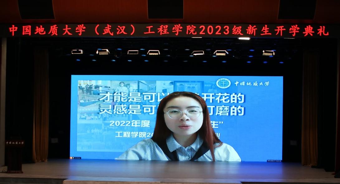 工程地质与岩土工程系教师吴琼作为教师代表发言。她以一名入学20年的“学姐”身份向各位新生分享自己的求学经历、教学经历、科研经历,从本科生到博士生,从硕士生导师到博士生导师,从职场小白到再取得一项项骄人的教学科研成果,风雨彩虹、铿锵玫瑰,她用自己的亲身经历书写着一名女性地质工程者向上攀登、步履不停的奋进史,为全体新生树立“真榜样”,帮助全体女生吃下学好工程专业的“定心丸”。吴琼老师寄语新生,要以理想者、担当者、吃苦者、奋斗者的姿态立足新时代、奋进新征程,创造新业绩、诠释正青春。