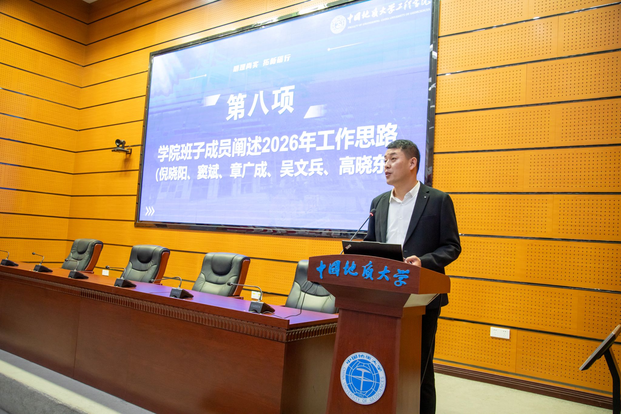 (通讯员 方长亮)2026年1月8日下午,星空平台app_星空(中国)第六届教职工大会第二次会议暨第六届工会会员大会第二次会议在南望山校区东区教学综合楼A0113会议室隆重召开。党委书记杨昌锐同志主持大会,全院教职工齐聚一堂,围绕“明理尚实 拓新砺行——为建设地质工程与人居安全领域特色鲜明、享誉国际的一流研究型学院而接续奋斗”主题共绘发展蓝图,圆满完成各项议程。